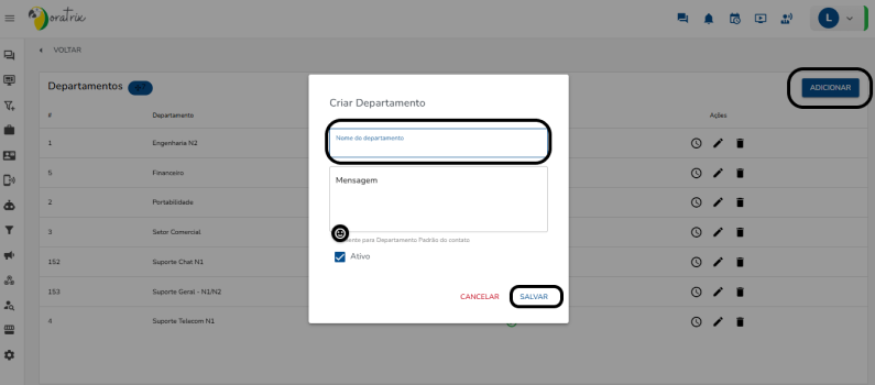 Feito, agora o departamento já está apto a ser adicionado no chatbot e a usuários.